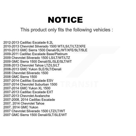 | 2012 | GMC | Sierra 1500 | Denali/SL/WT/XFE/SLT/SLE | Front Inner |