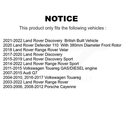 | 2020 | Land Rover | Defender 110 | With 380mm Diameter Front Rotor | Front and Rear |