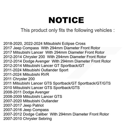 | 2010 | Dodge | Caliber | With 294mm Diameter Front Rotor | Front |