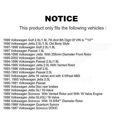 Front Disc Brake Rotors Pair For Volkswagen Jetta Cabrio Golf Passat Scirocco Quantum K8-100559