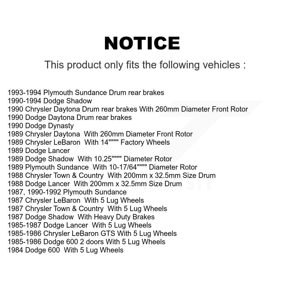 Front Rear Disc Brake Rotors Drums Kit For Dodge Chrysler LeBaron Shadow Plymouth Sundance 600 Dynasty Lancer Daytona Town & Country K8-102013