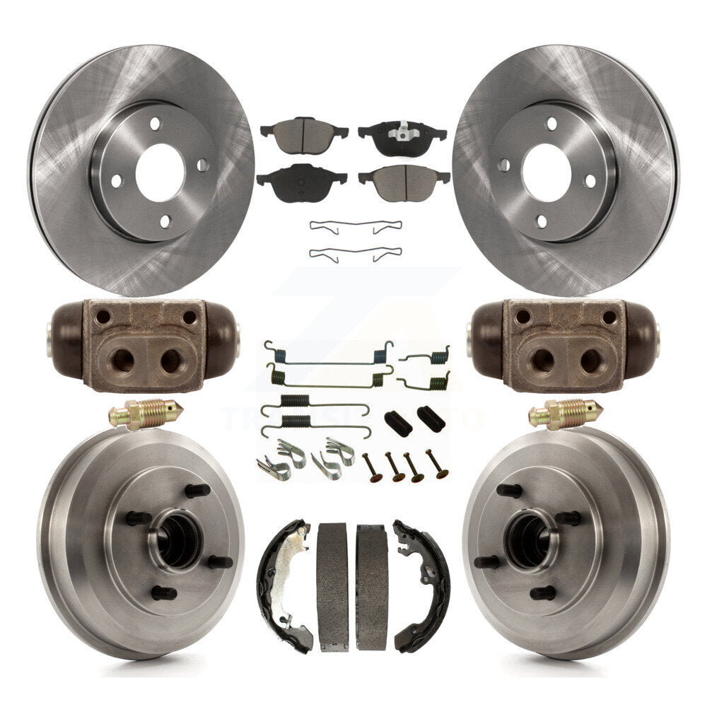 Front Rear Disc Brake Rotors Ceramic Pads And Drum Kit (9Pc) For 2005-2007 Ford Focus Wheel Bearing Includes K8C-102896