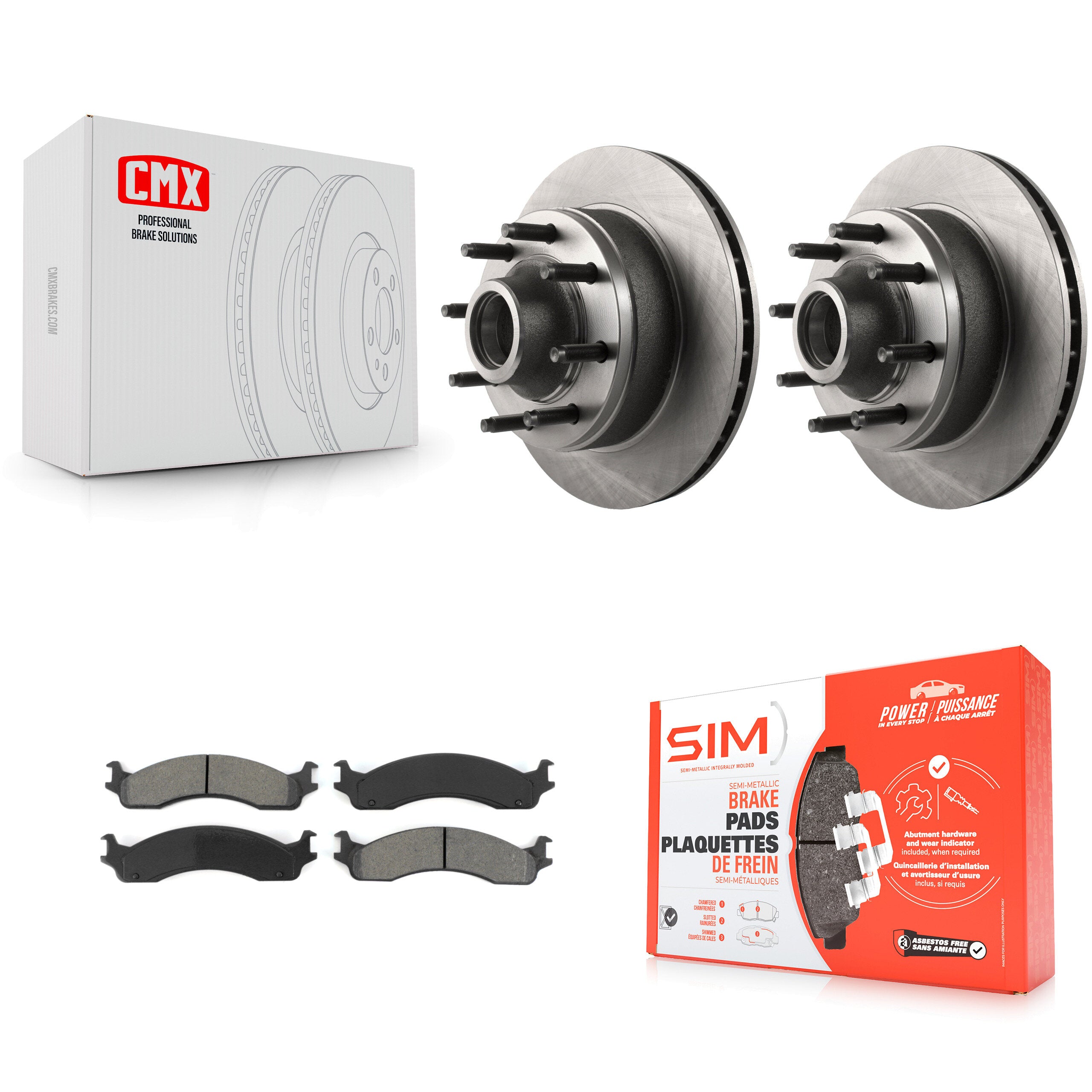 Front Disc Brake Rotors Hub Assembly And Semi-Metallic Pads Kit For Ford E-350 Super Duty E-250 Econoline F-250 HD Club Wagon E-450 K8S-100700