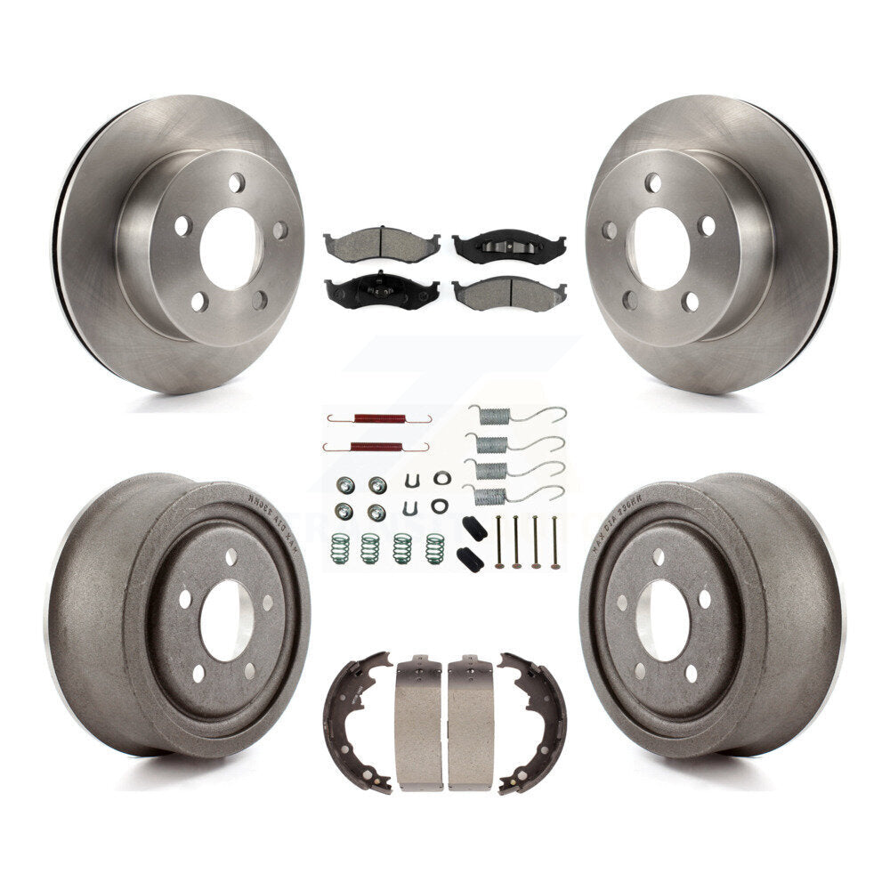 Front Rear Disc Brake Rotors Semi-Metallic Pads And Drum Kit (7Pc) For 2000 Jeep Wrangler With 9" Diameter K8S-102062