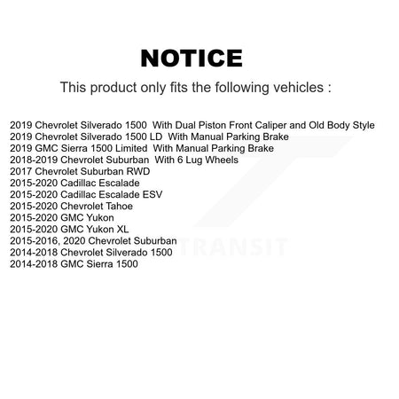 Rear Disc Brake Rotors And Ceramic Pads Kit For Chevrolet Silverado 1500 GMC Sierra Tahoe Suburban Yukon Cadillac XL Escalade ESV LD Limited K8T-101662