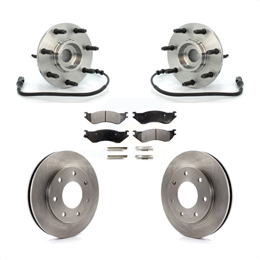 Front Hub Bearing Assembly With Disc Brake Rotors And Ceramic Pads Kit For Ford F-150 Heritage F-250 7 Lug Wheels 4WD with 4-Wheel ABS KBB-100788
