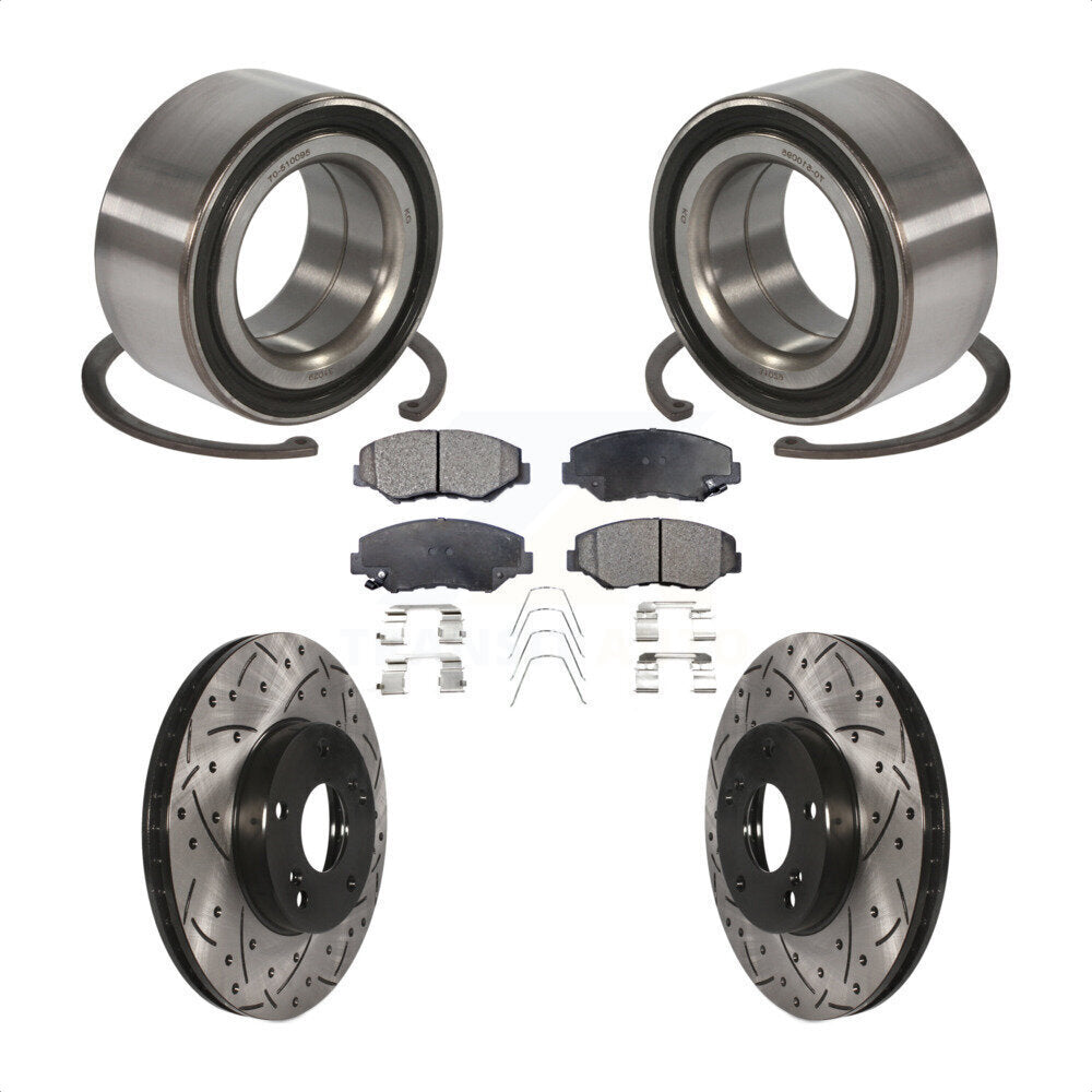 Front Wheel Bearing With Coated Drilled Slotted Disc Brake Rotors And Semi-Metallic Pads Kit For Honda Accord KBB-101037