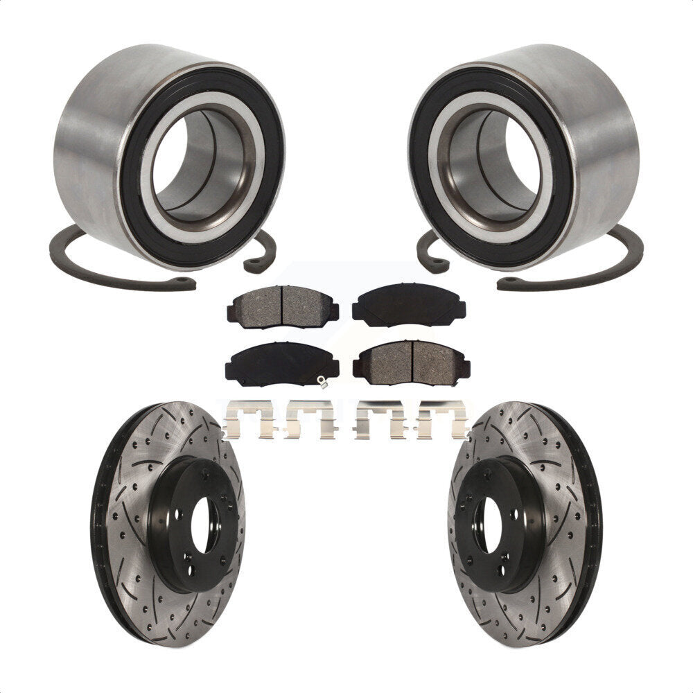Front Wheel Bearing With Coated Drilled Slotted Disc Brake Rotors And Semi-Metallic Pads Kit For Honda Accord Acura CSX KBB-101091