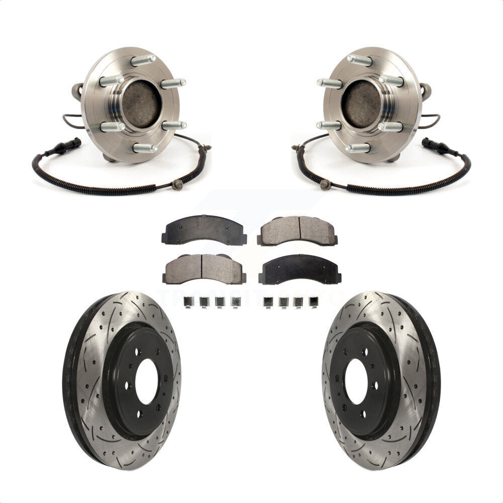 Front Hub Bearing Assembly Coated Drilled Slotted Disc Brake Rotors And Semi-Metallic Pads Kit For 2010 Ford F-150 RWD With 6 Lug Wheels Without Heavy Duty Payload Package KBB-103016