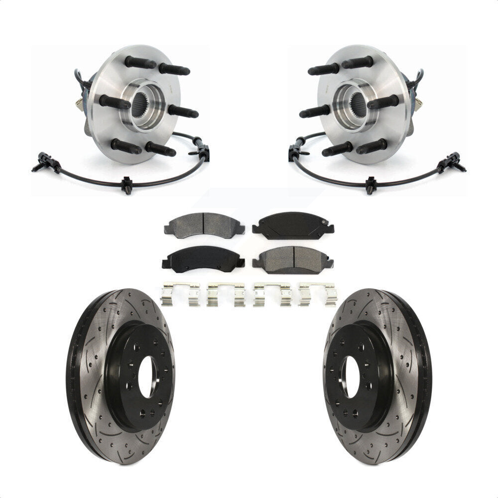 Front Hub Bearing Assembly With Coated Drilled Slotted Disc Brake Rotors And Semi-Metallic Pads Kit For Chevrolet Silverado 1500 GMC Sierra Classic Express Savana KBB-103181