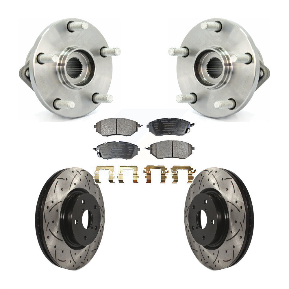 Front Hub Bearing Assembly With Coated Drilled Slotted Disc Brake Rotors And Ceramic Pads Kit For 2008-2014 Subaru Tribeca KBB-103271