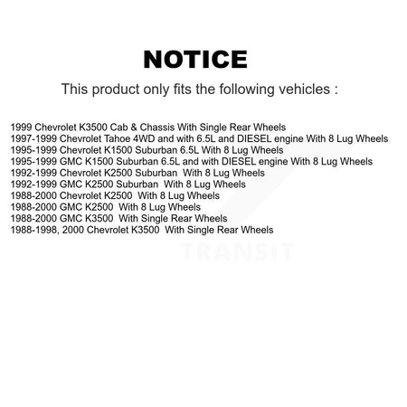 | 1995 | GMC | K2500 | With 8 Lug Wheels | Front |