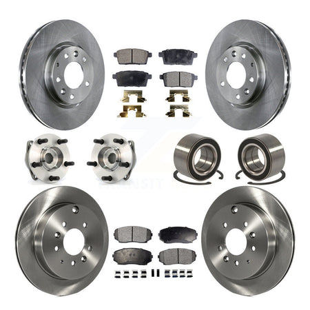Front Rear Wheel Hub Bearings Assembly Disc Brake Rotors And Semi-Metallic Pads Kit (10Pc) For 2007-2012 Mazda CX-7 AWD KBB-106286