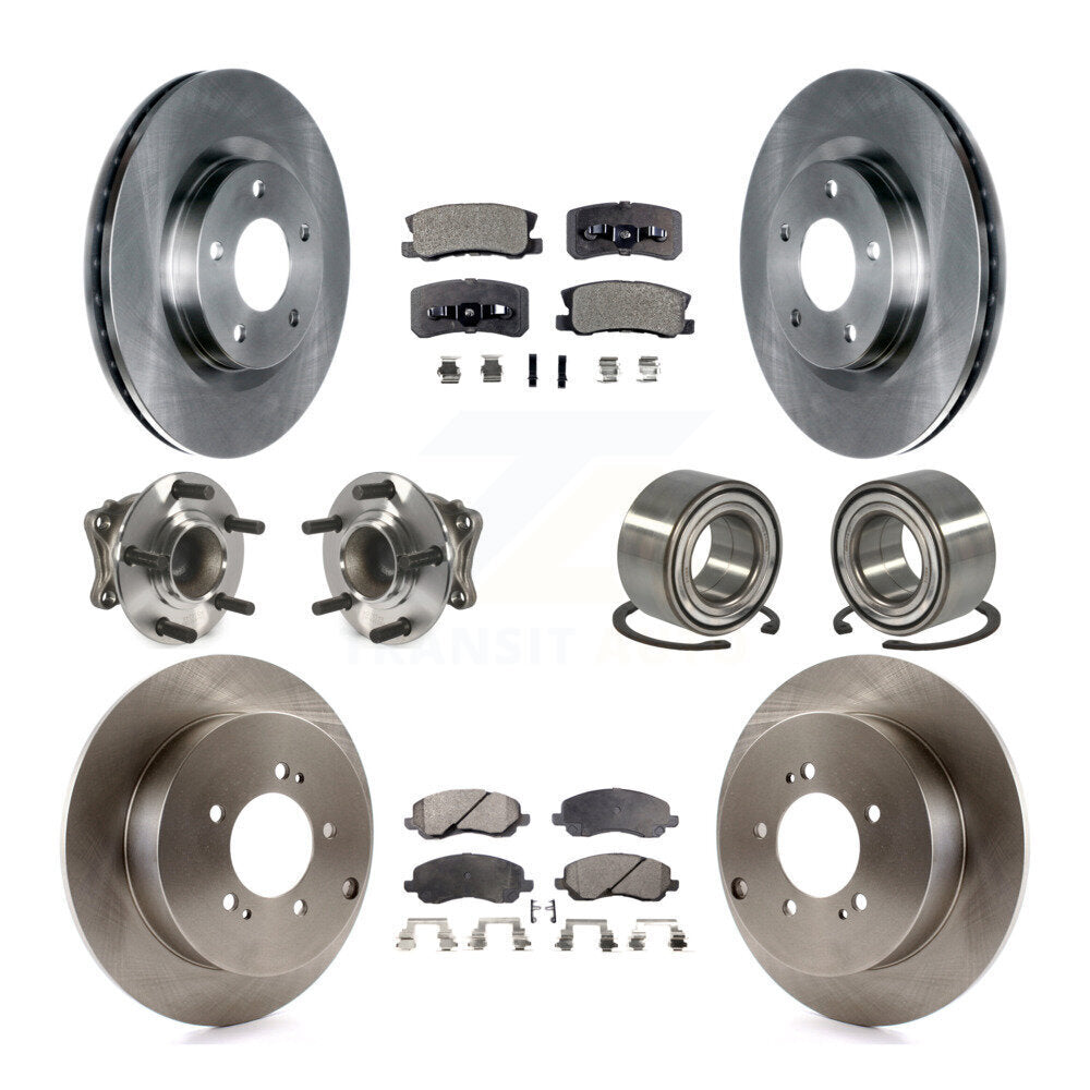 Front Rear Wheel Hub Bearings Assembly Disc Brake Rotors And Semi-Metallic Pads Kit (10Pc) For Mitsubishi Outlander KBB-106297