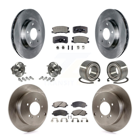 Front Rear Wheel Hub Bearings Assembly Disc Brake Rotors And Semi-Metallic Pads Kit (10Pc) For Mitsubishi Outlander Without 7 Passenger Seating KBB-106300