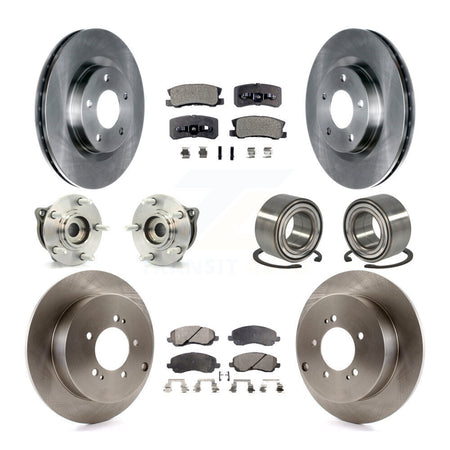 Front Rear Wheel Hub Bearings Assembly Disc Brake Rotors And Semi-Metallic Pads Kit (10Pc) For Mitsubishi Outlander With 7 Passenger Seating KBB-106302