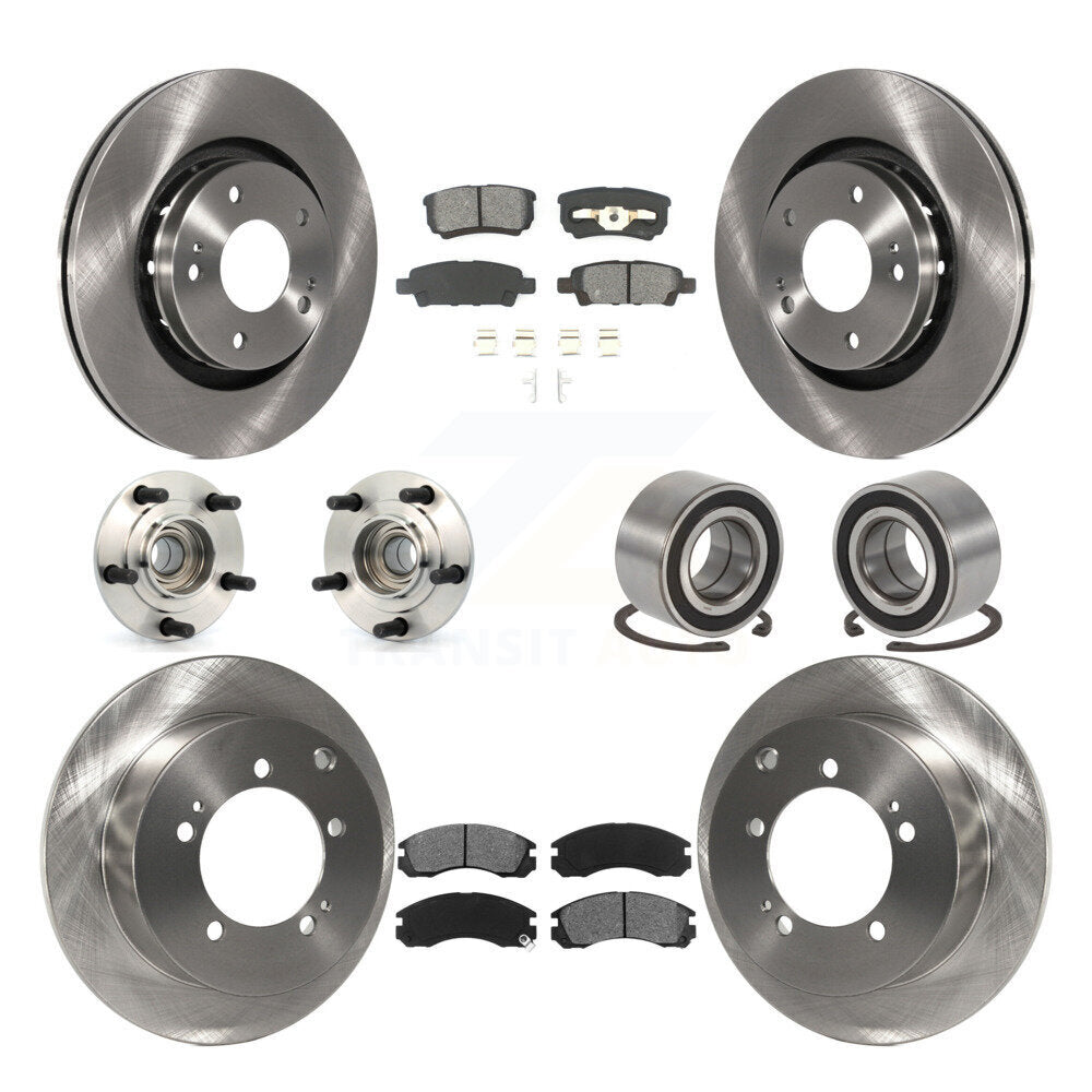 Front Rear Wheel Hub Bearings Assembly Disc Brake Rotors And Semi-Metallic Pads Kit (10Pc) For 2005-2006 Mitsubishi Outlander FWD KBB-106667