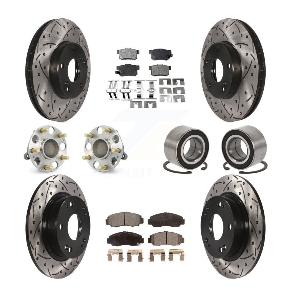 Front Rear Wheel Hub Bearings Assembly Coated Disc Brake Rotors And Semi-Metallic Pads Kit (10Pc) For Acura CSX KBB-107327