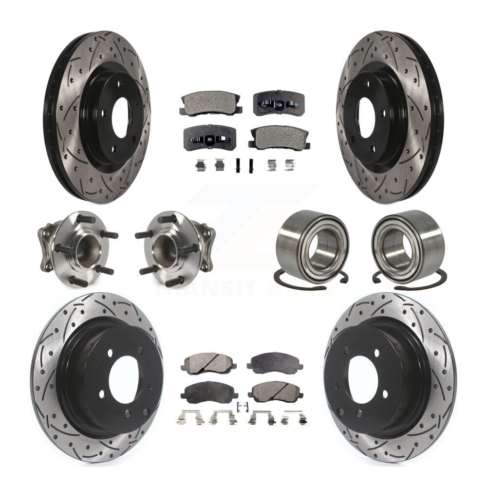 Front Rear Wheel Hub Bearings Assembly Coated Disc Brake Rotors And Semi-Metallic Pads Kit (10Pc) For Mitsubishi Outlander FWD with 2.4L KBB-107347