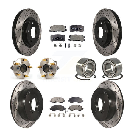 Front Rear Wheel Hub Bearings Assembly Coated Disc Brake Rotors And Semi-Metallic Pads Kit (10Pc) For 2011 Mitsubishi Outlander FWD with 3.0L Without 7 Passenger Seating KBB-107358