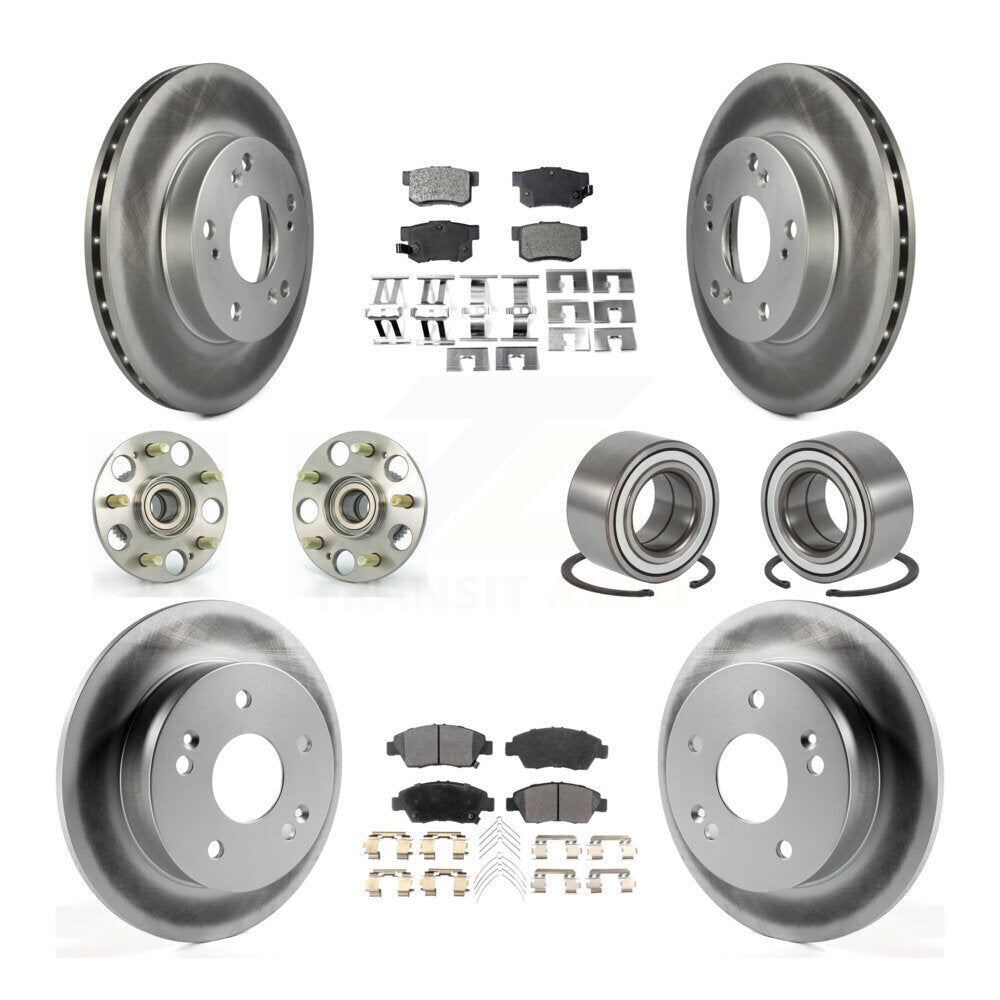Front Rear Wheel Hub Bearings Assembly Coated Disc Brake Rotors And Semi-Metallic Pads Kit (10Pc) For Honda Civic Acura RSX KBB-107675
