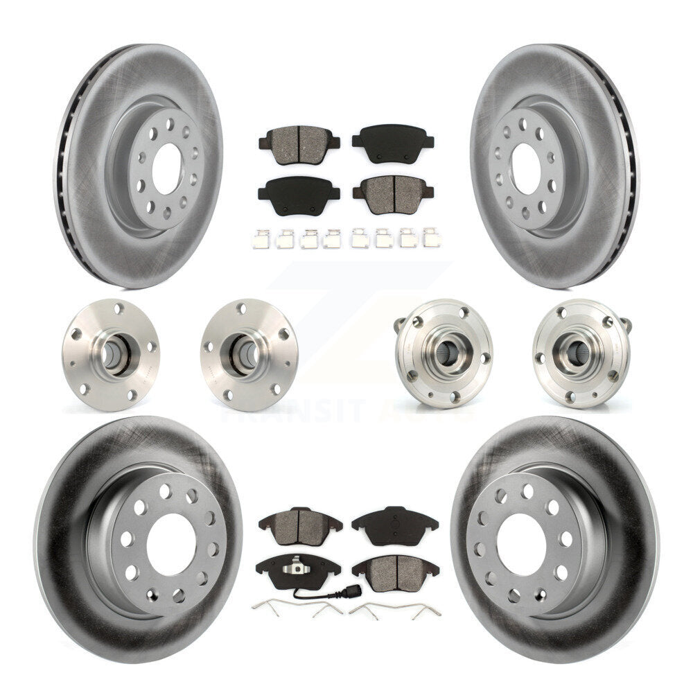 Front Rear Hub Bearings Assembly Coated Disc Brake Rotors And Semi-Metallic Pads Kit (10Pc) For Volkswagen GTI With 30mm bearing KBB-112086