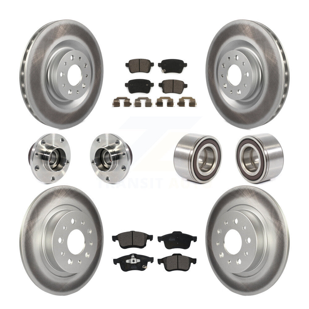 Front Rear Wheel Hub Bearings Assembly Coated Disc Brake Rotors And Ceramic Pads Kit (10Pc) For 2014-2017 Fiat 500L KBB-113263
