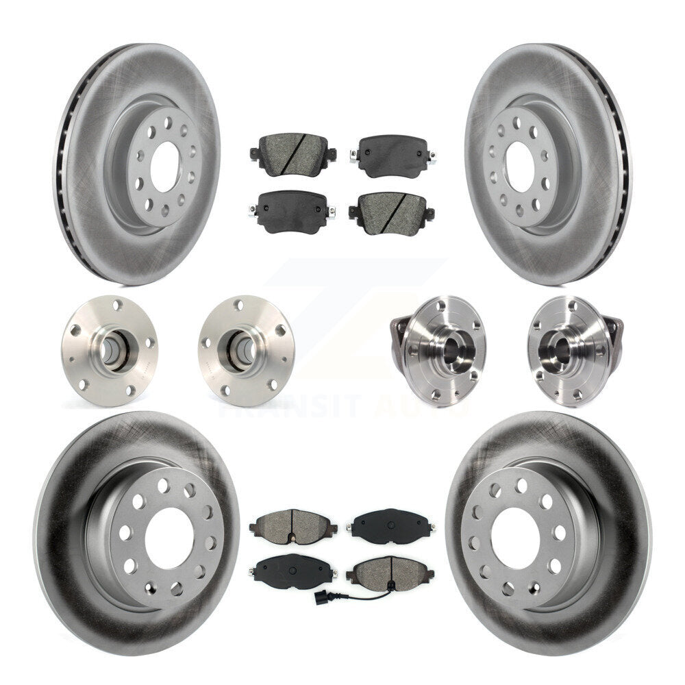 Front Rear Hub Bearings Assembly Coated Disc Brake Rotors And Semi-Metallic Pads Kit (10Pc) For 2015-2018 Volkswagen GTI Without Performance Package KBB-113831