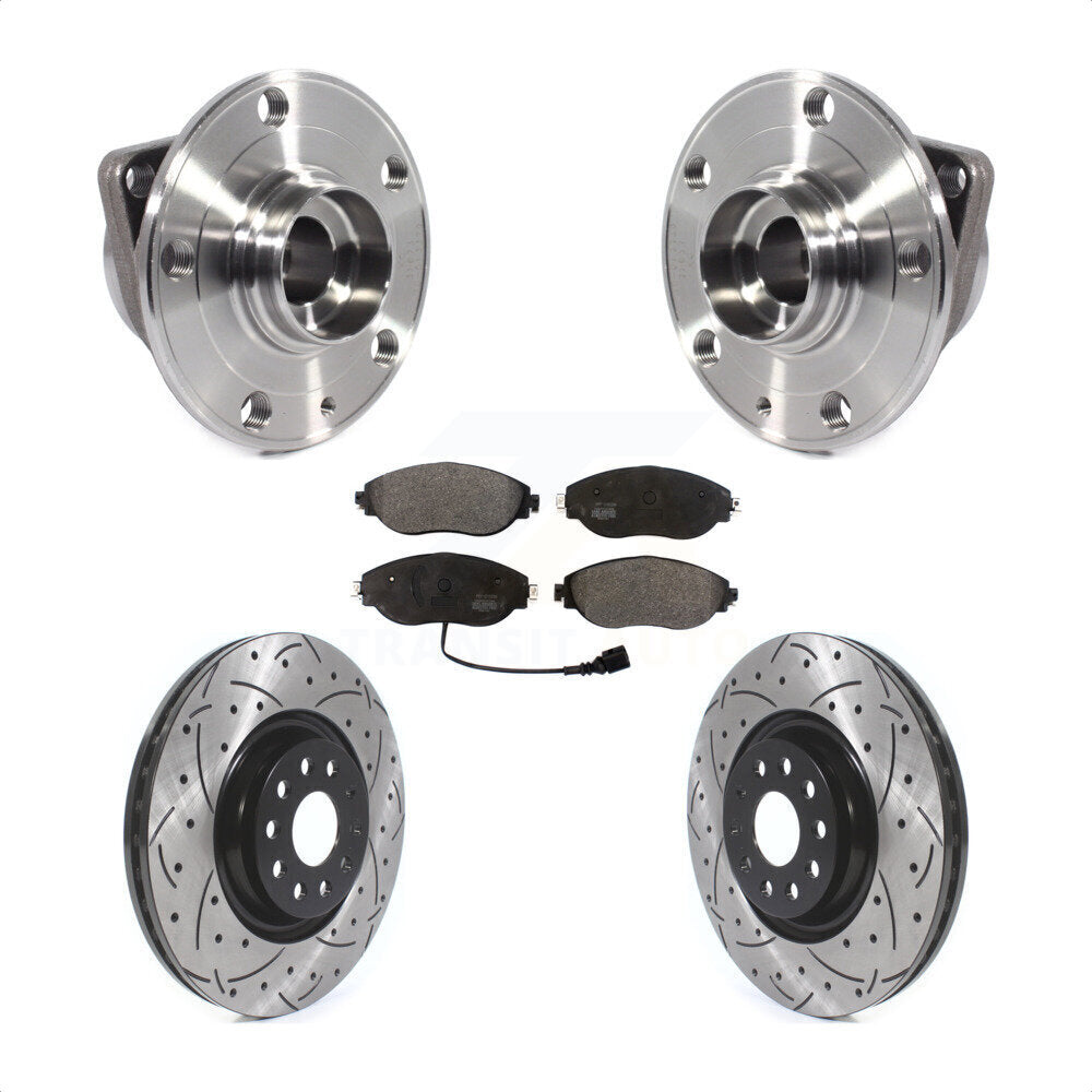 Front Hub Bearing Assembly With Coated Drilled Slotted Disc Brake Rotors And Semi-Metallic Pads Kit For Volkswagen Tiguan Jetta GTI Audi Golf R S3 Q3 Arteon KBB-114531