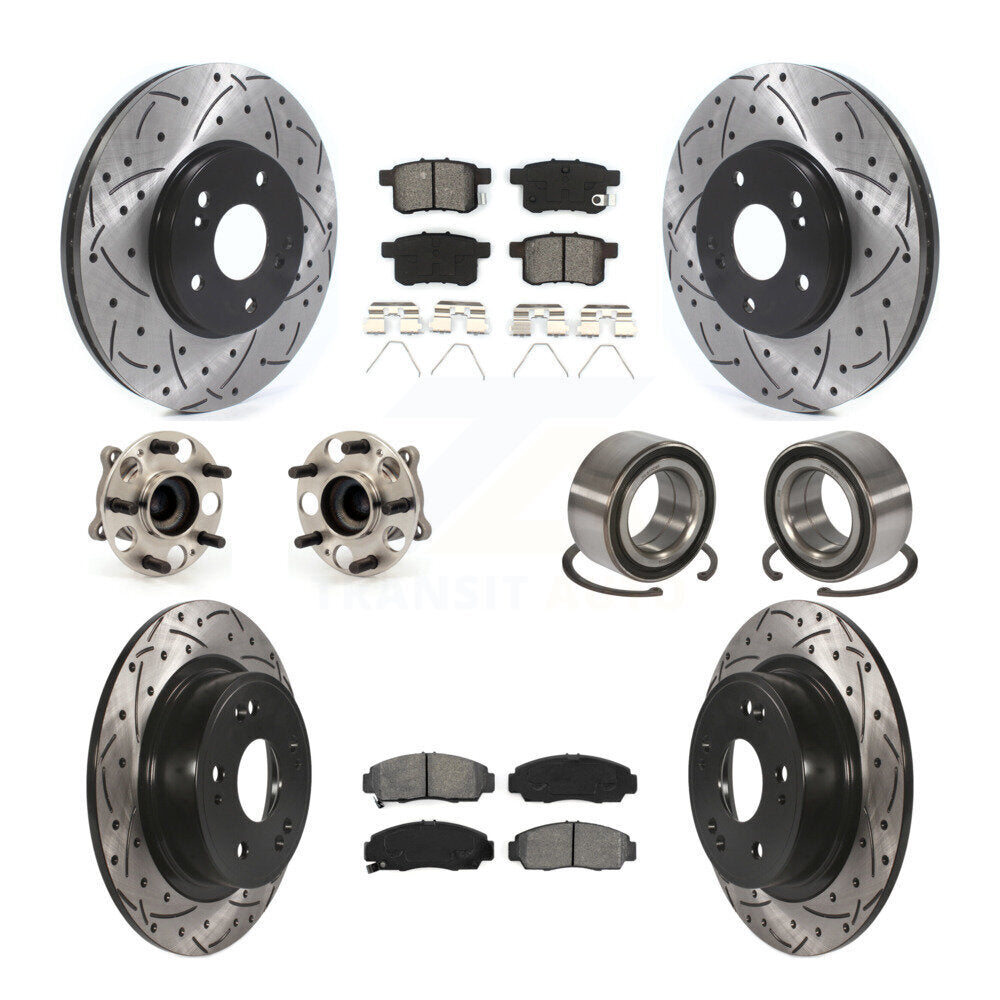 Front Rear Wheel Hub Bearings Assembly Coated Disc Brake Rotors And Semi-Metallic Pads Kit (10Pc) For Honda Accord Acura TSX KBB-115531