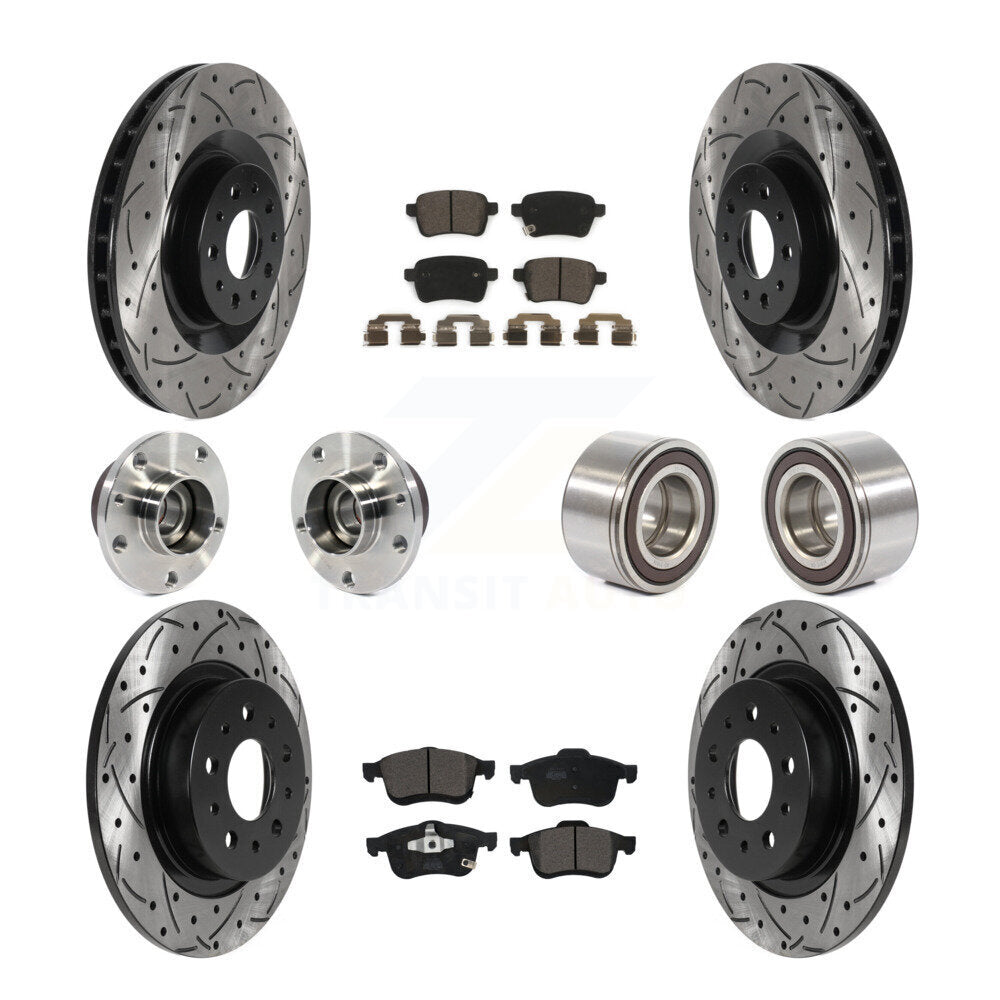Front Rear Wheel Hub Bearings Assembly Coated Disc Brake Rotors And Ceramic Pads Kit (10Pc) For 2014-2017 Fiat 500L KBB-115629