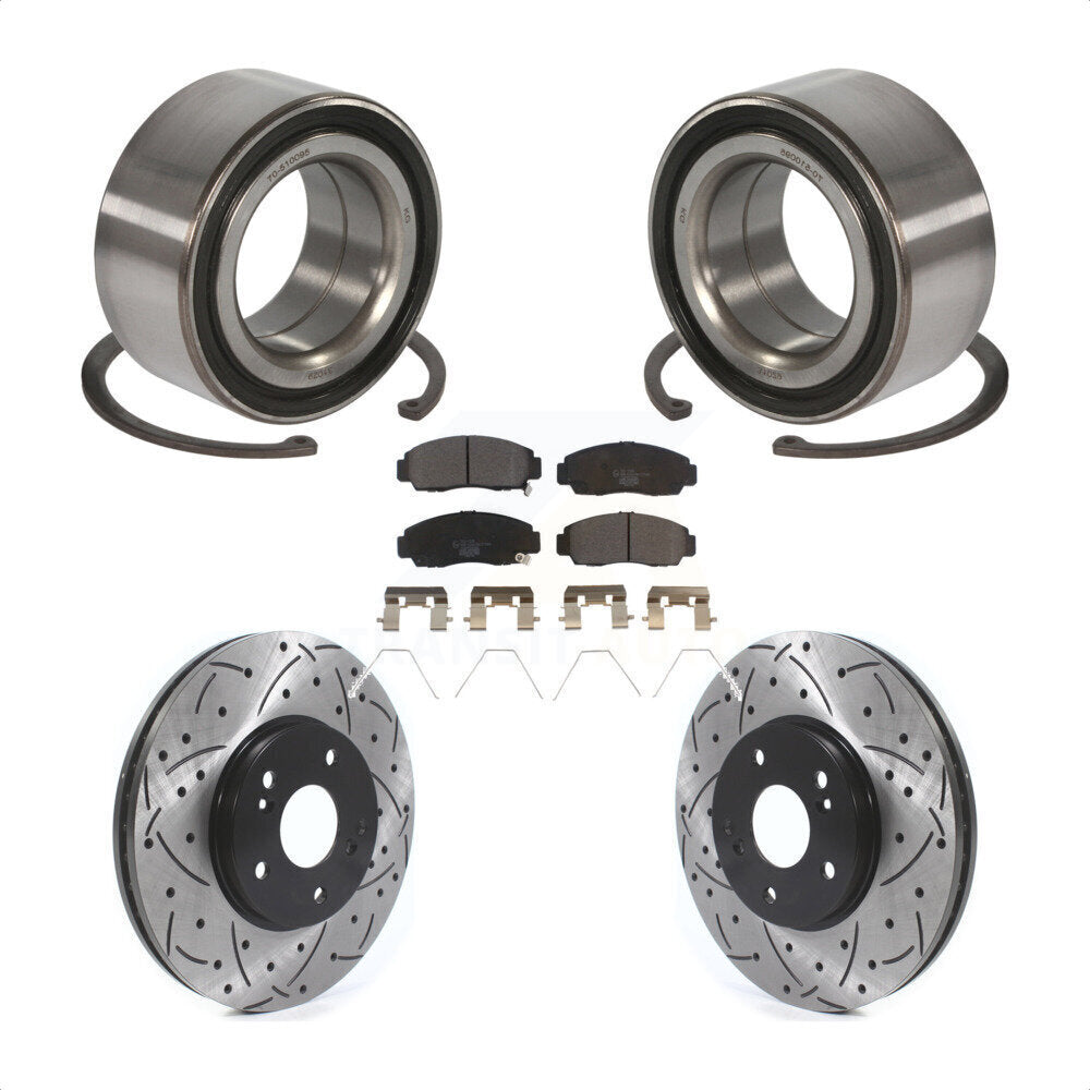 Front Wheel Bearing With Coated Drilled Slotted Disc Brake Rotors And Ceramic Pads Kit For Honda Accord Acura TSX KBB-115653