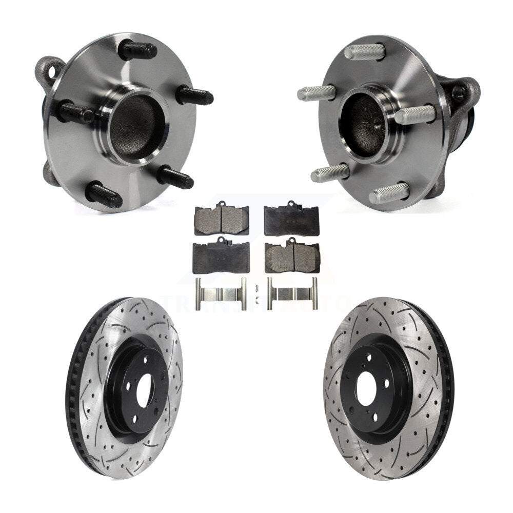 Front Hub Bearing Assembly With Coated Drilled Slotted Disc Brake Rotors And Semi-Metallic Pads Kit (5Pc) For Lexus IS350 GS350 GS450h GS460 KBB-115819