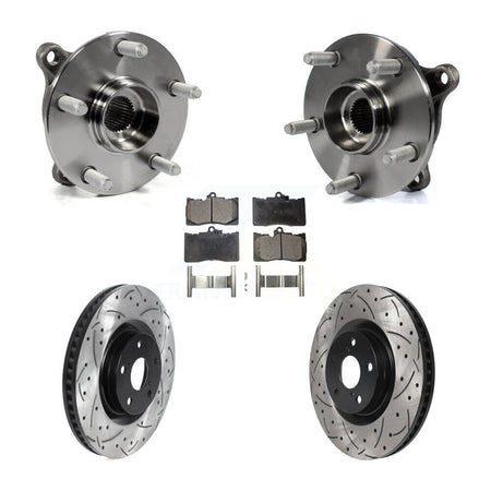 Front Hub Bearing Assembly With Coated Drilled Slotted Disc Brake Rotors And Semi-Metallic Pads Kit (5Pc) For Lexus GS350 IS300 IS350 RC350 RC300 KBB-115820