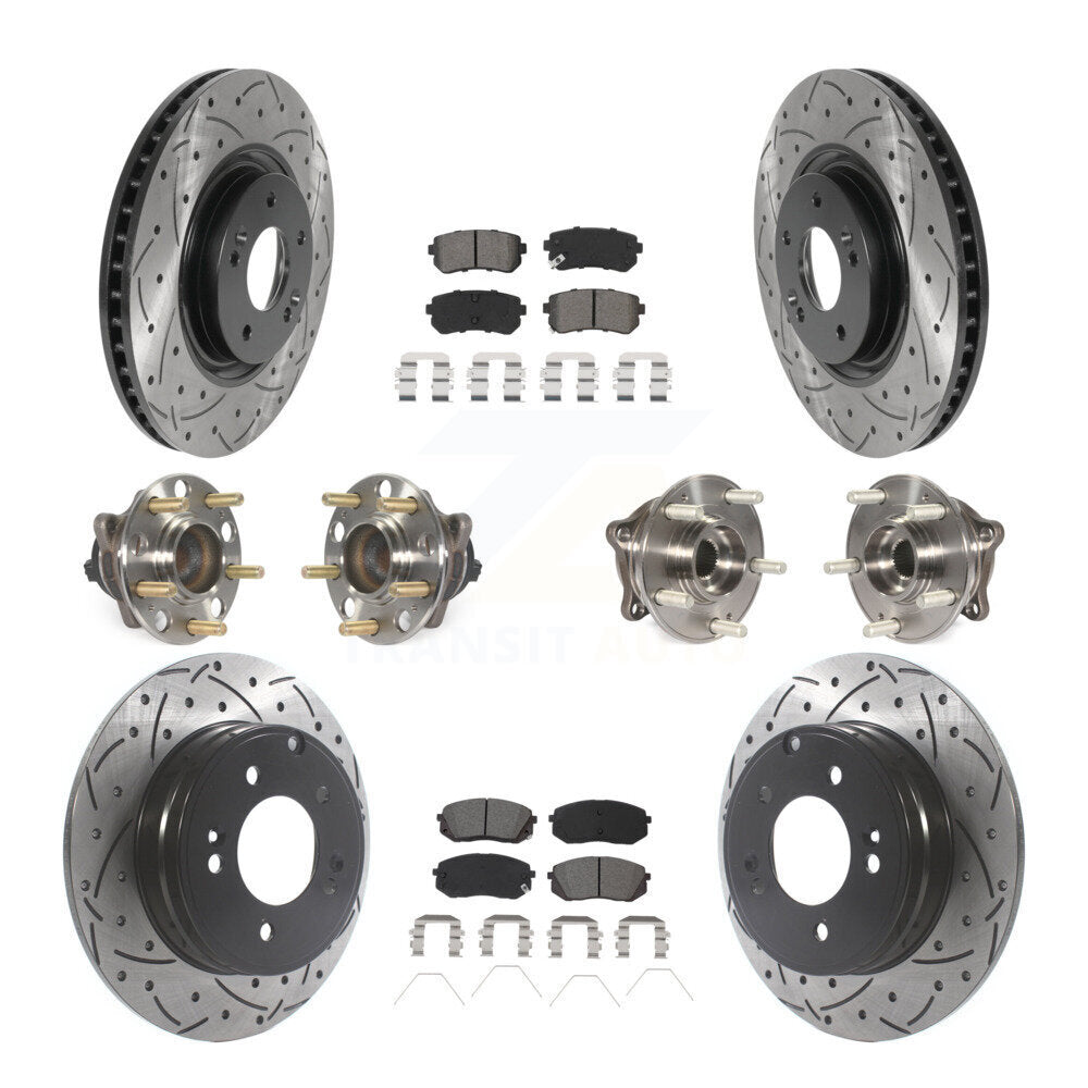 Front Rear Hub Bearings Assembly Coated Disc Brake Rotors And Semi-Metallic Pads Kit (10Pc) For Kia Optima With Manual Parking KBB-115862
