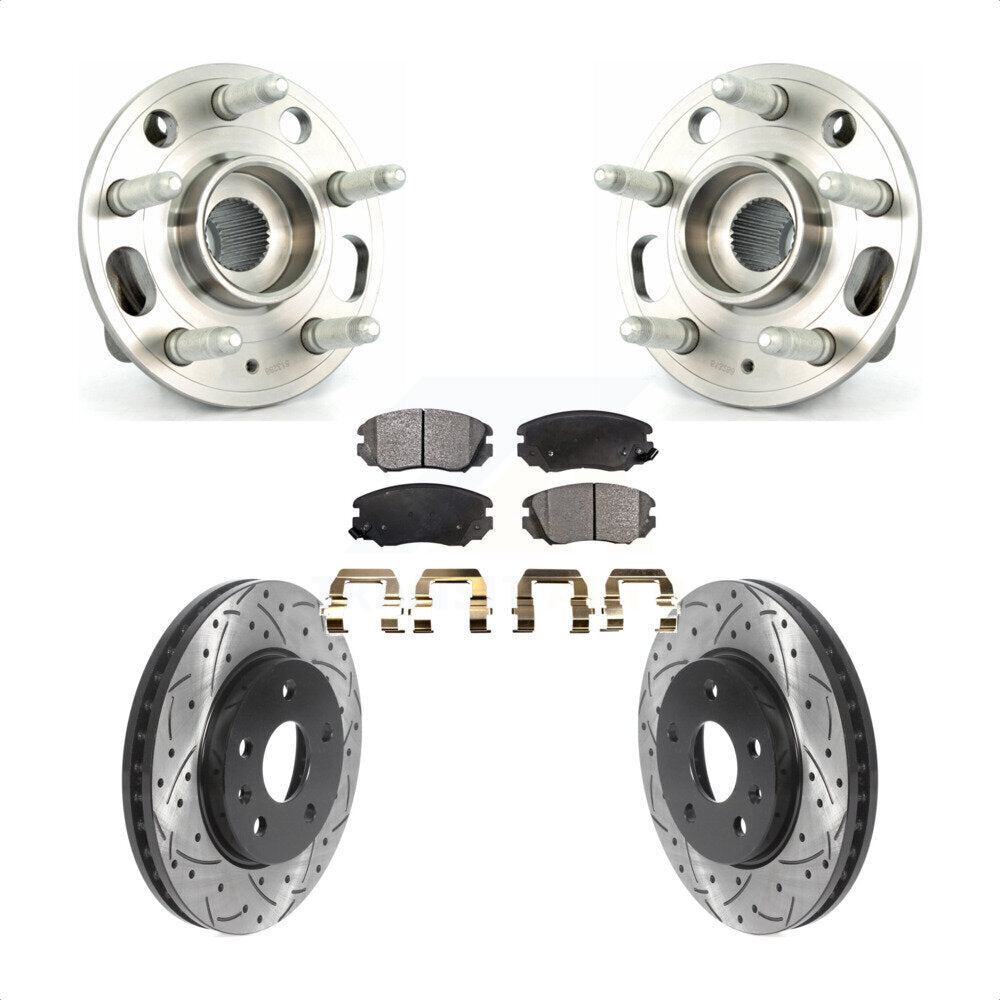 Front Hub Bearing Assembly With Coated Drilled Slotted Disc Brake Rotors And Ceramic Pads Kit For Chevrolet Malibu Buick LaCrosse Regal Limited KBB-116016