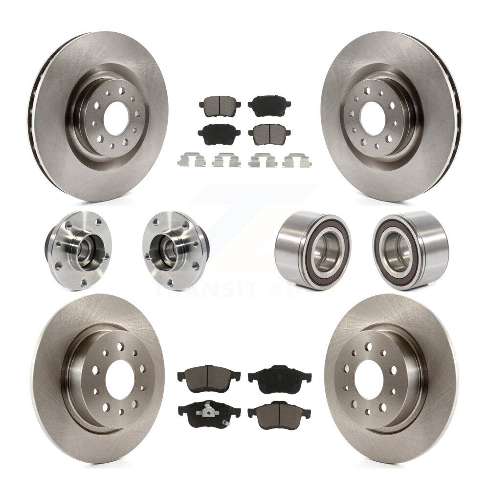 Front Rear Wheel Hub Bearings Assembly Disc Brake Rotors And Ceramic Pads Kit (10Pc) For 2014-2017 Fiat 500L KBB-117275