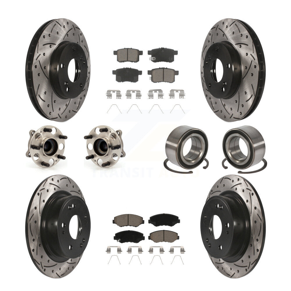 Front Rear Wheel Hub Bearings Assembly Coated Disc Brake Rotors And Ceramic Pads Kit (10Pc) For Honda Accord KBB-117576