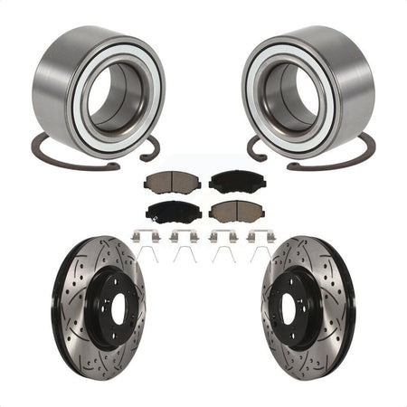Front Wheel Bearing With Coated Drilled Slotted Disc Brake Rotors And Ceramic Pads Kit For 2005-2006 Honda CR-V KBB-117720