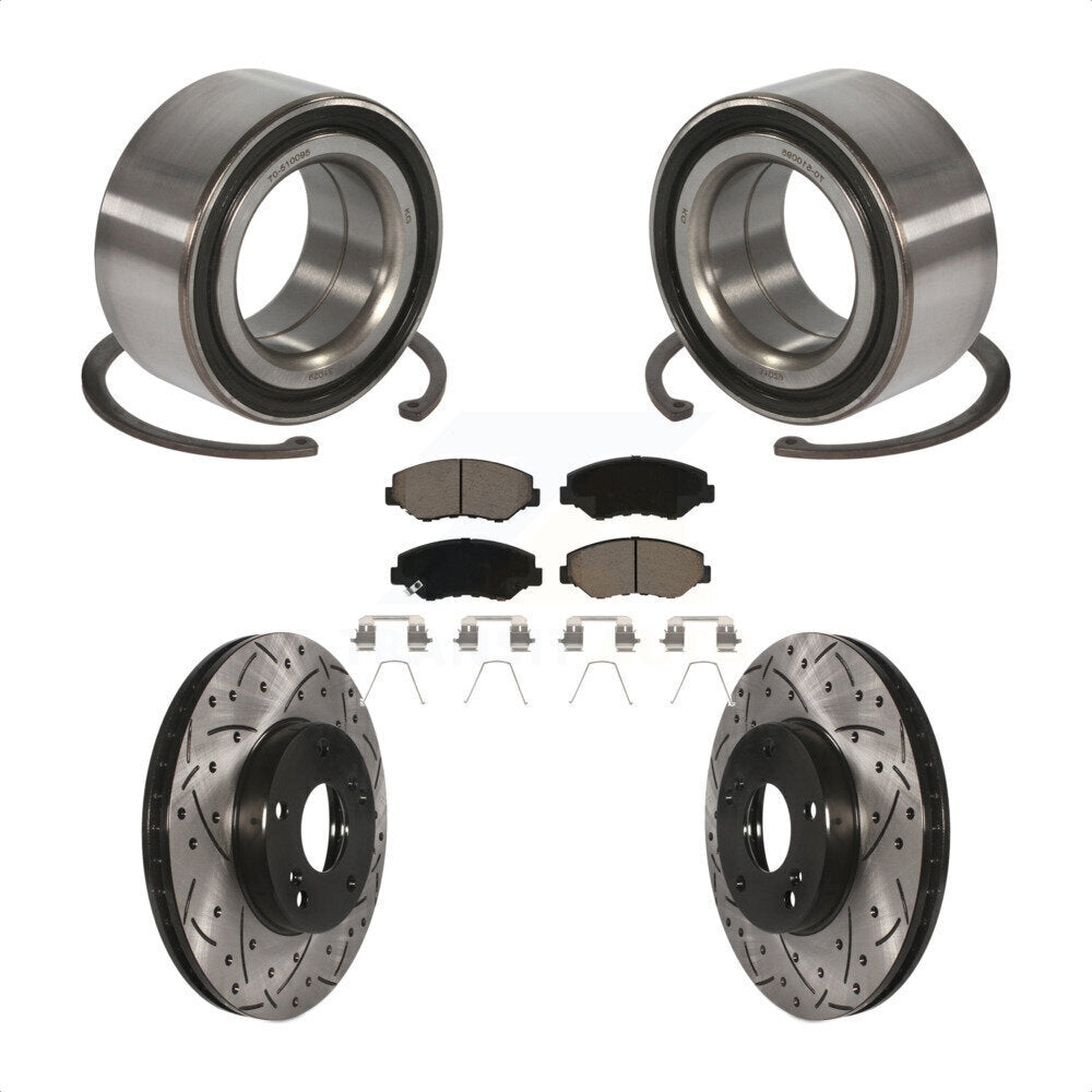 Front Wheel Bearing With Coated Drilled Slotted Disc Brake Rotors And Ceramic Pads Kit For Honda Accord KBB-117721