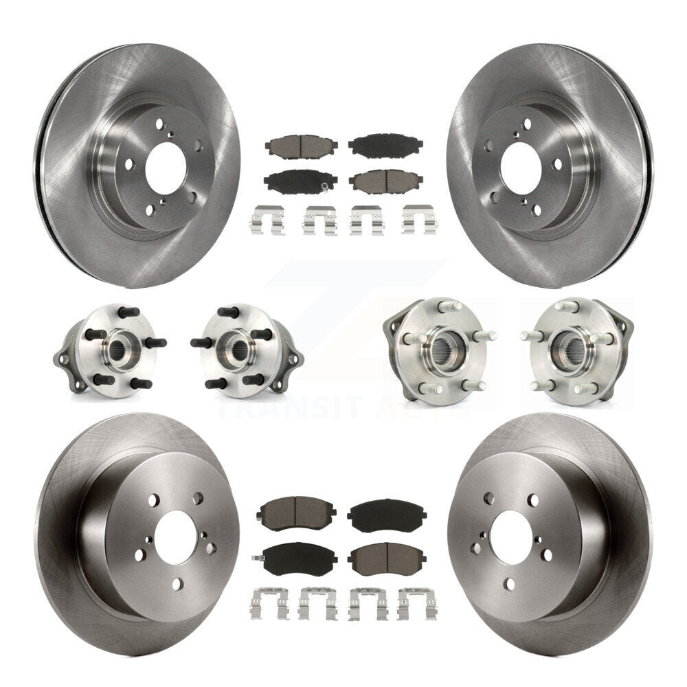 Front Rear Hub Bearings Assembly Disc Brake Rotors And Ceramic Pads Kit (10Pc) For 2005 Subaru Legacy i Limited With 277mm Diameter Rotor KBB-119336