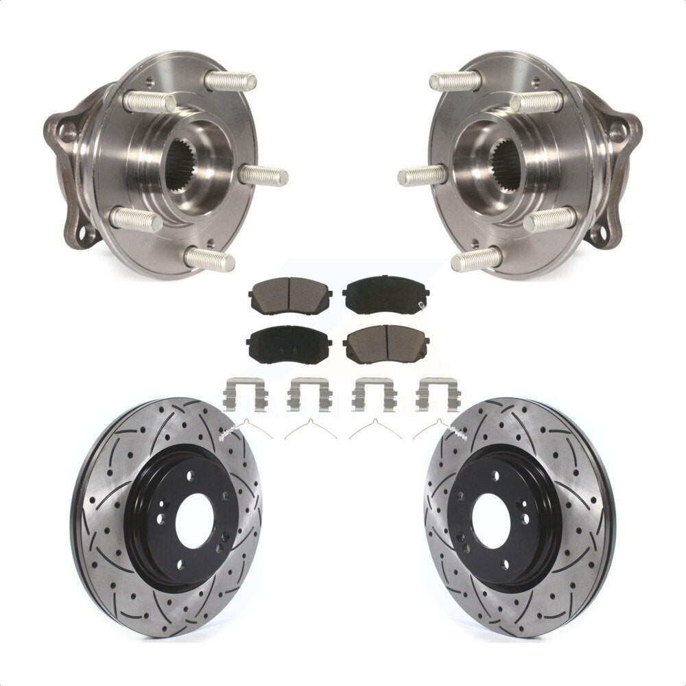 Front Hub Bearing Assembly With Coated Drilled Slotted Disc Brake Rotors And Ceramic Pads Kit For Hyundai Sonata Kia Optima KBB-120139