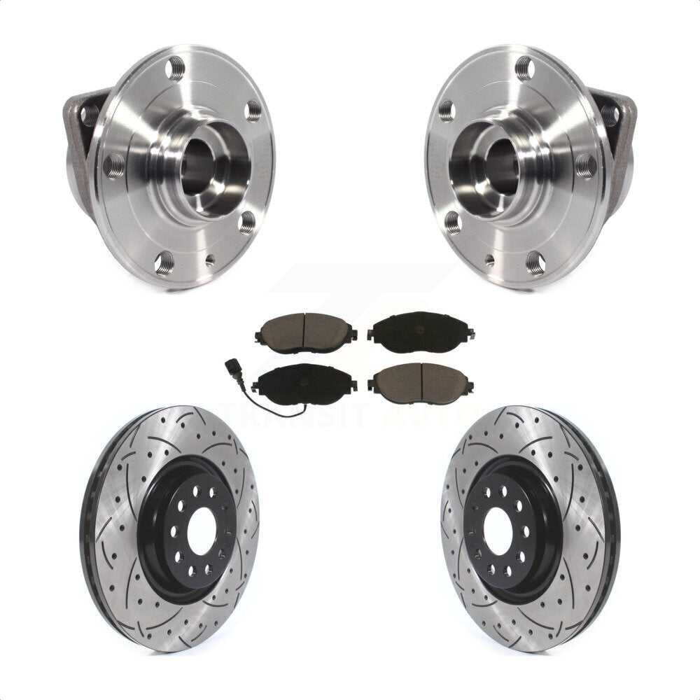 Front Hub Bearing Assembly With Coated Drilled Slotted Disc Brake Rotors And Ceramic Pads Kit For Volkswagen Tiguan Jetta GTI Audi Golf R S3 Q3 Arteon KBB-120221