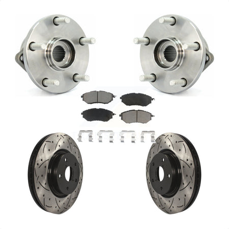 Front Hub Bearing Assembly With Coated Drilled Slotted Disc Brake Rotors And Ceramic Pads Kit For 2008-2014 Subaru Tribeca KBB-120344