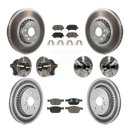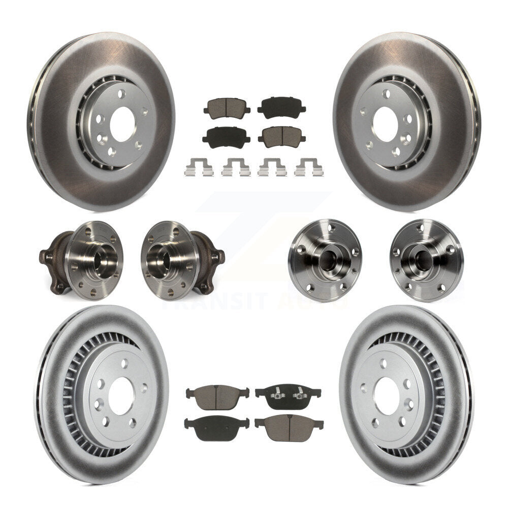 Front Rear Hub Bearings Assembly Coated Disc Brake Rotors And Ceramic Pads Kit (10Pc) For 2010-2015 Volvo XC60 AWD KBB-120860