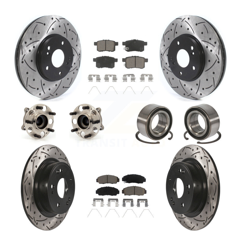 Front Rear Wheel Hub Bearings Assembly Coated Disc Brake Rotors And Ceramic Pads Kit (10Pc) For Honda Accord Acura TSX KBB-122910
