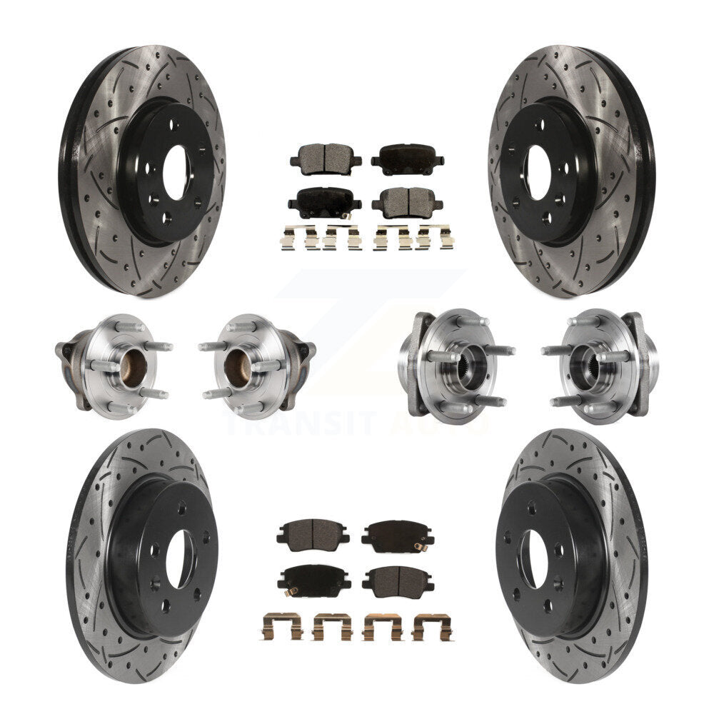 Front Rear Hub Bearings Assembly Coated Disc Brake Rotors And Semi-Metallic Pads Kit (10Pc) For Chevrolet Volt Bolt EV KBB-123803