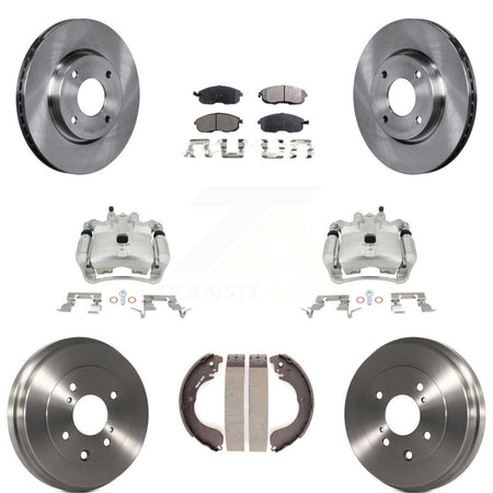 Front Rear Disc Brake Caliper Rotors Drums Semi-Metallic Pads Kit (8Pc) For Nissan Sentra KC8-100831P