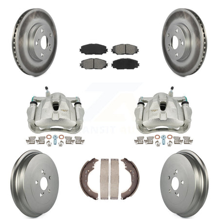 Front Rear Disc Brake Caliper Coated Rotors Drums Semi-Metallic Pads Kit (8Pc) For Toyota Corolla KCG-100390S