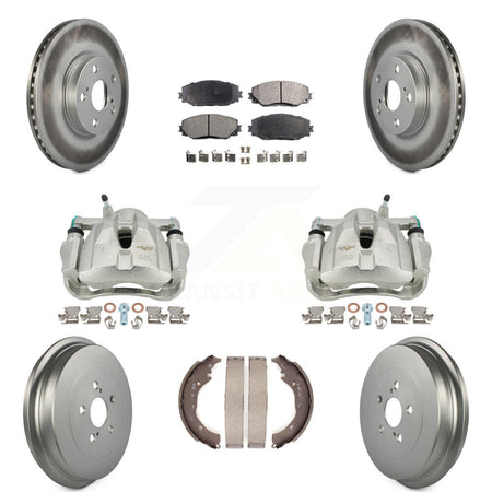 Front Rear Disc Brake Caliper Coated Rotors Drums Semi-Metallic Pads Kit (8Pc) For Toyota Corolla KCG-100420P
